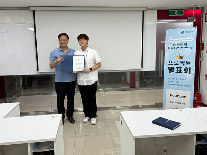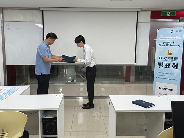 [더존비즈온] Cloud DX Academy 1기 프로젝트 발표회 및 수료식 안녕하세요. K-Digital Trainning 디지털 선도기업 아카데미[더존비즈온] Cloud DX Academy 1기프로젝트 발표회 및 수료식이 있었습니다.- 일시 : 2025년 8월 27일 수요일- 장소 : 하이미디어 아카데미 종로점감사합니다.
