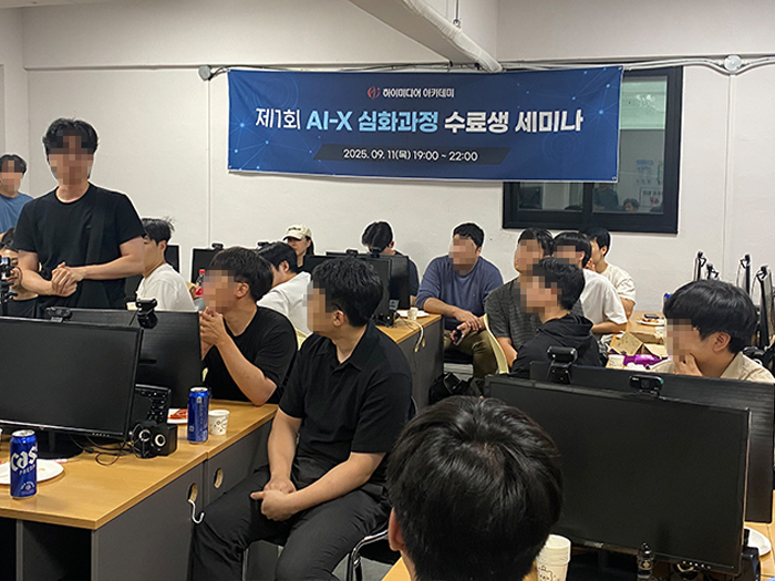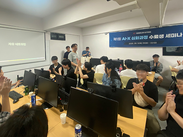 제1회 AI-X 심화과정 수료생 세미나 안녕하세요. 지난 11일, 하이미디어 아카데미 강남AI점에서 '제1회 AI-X 심화과정 수료생 세미나'가 열렸습니다. 취업생 및 수료생 총 50명이 참석하였으며취업 성공 사례와 취업 준비시 필요한 내용에 대한 설명을 나누고자유 네트워킹 시간도 가졌습니다. 앞으로도 여러분의 취업 성공을 위해 노력하겠습니다 감사합니다.